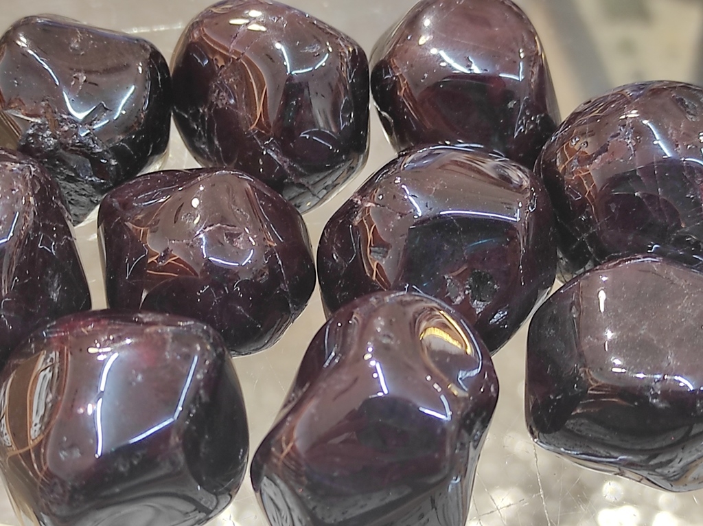 Vrlo lijepi poluobrađeni kristali Granata iz rudnika u Brazilu. Tamnocrvenih su (bordo) boja te sjajnih tonova. Ovi poludragi kameni upotrebljavaju se za masaže (wellness), kristaloterapije, Feng Shui, Reiki ili za izradu orgonita. Brojno ezoterično značenje, ljekovito djelovanje, čišćenje i punjenje ovog minerala pronaći ćete u “Kutku za radoznale“. Cijena je za jedan komad na Lotosovoj online prodaji. Pregledajte cjelokupni asortiman poludragog kamenja za izvrsne cijene i naručite ih brzo i jednostavno preko našeg online kataloga.