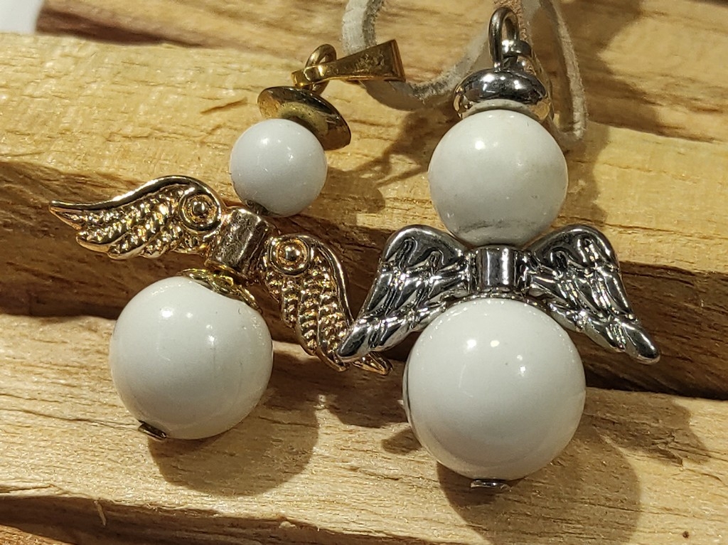 Nakit iz naše radione Poludrago kamenje nakit Howlit nakit Howlit privjesak anđeo A-001