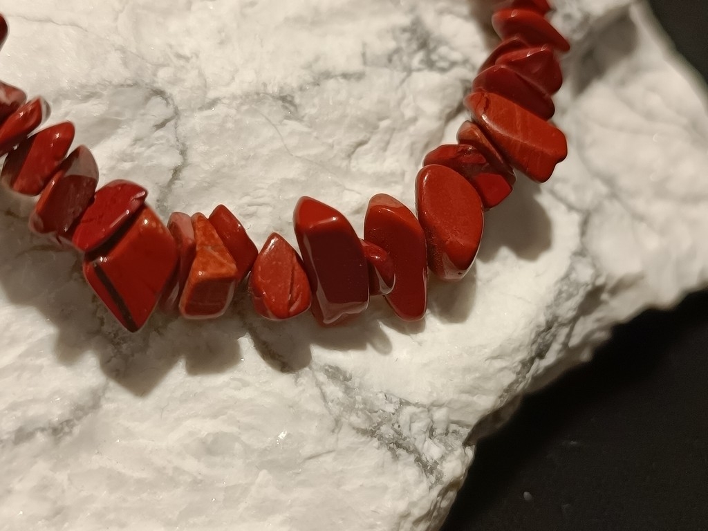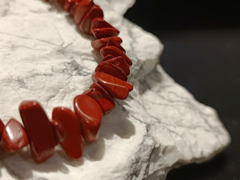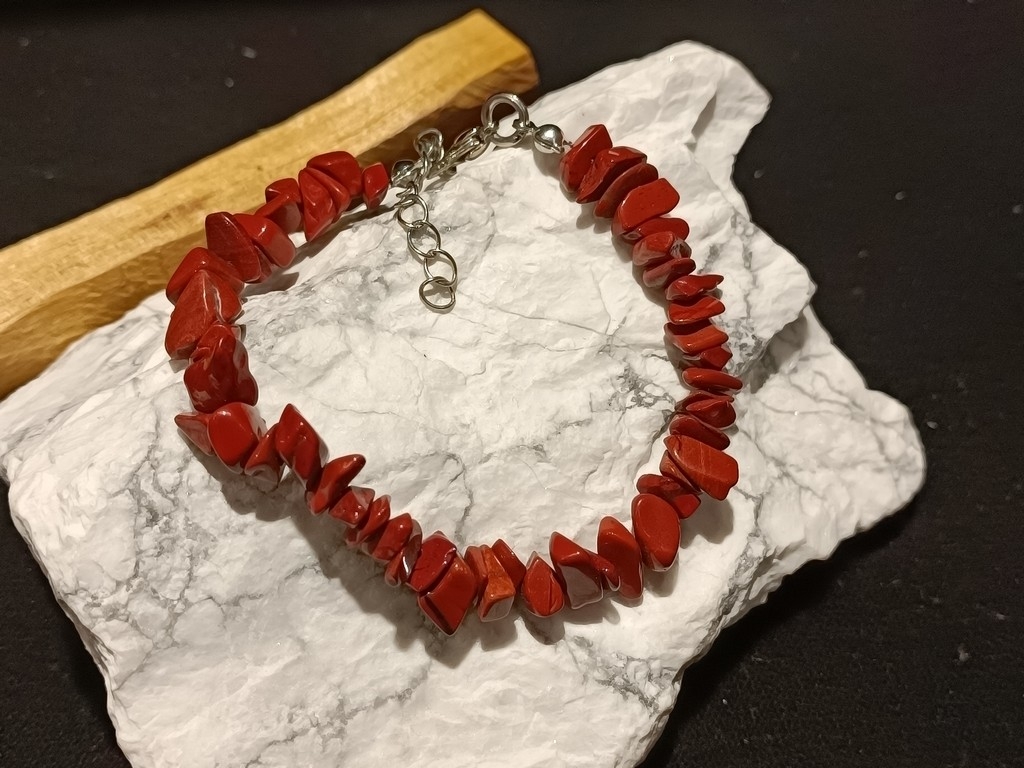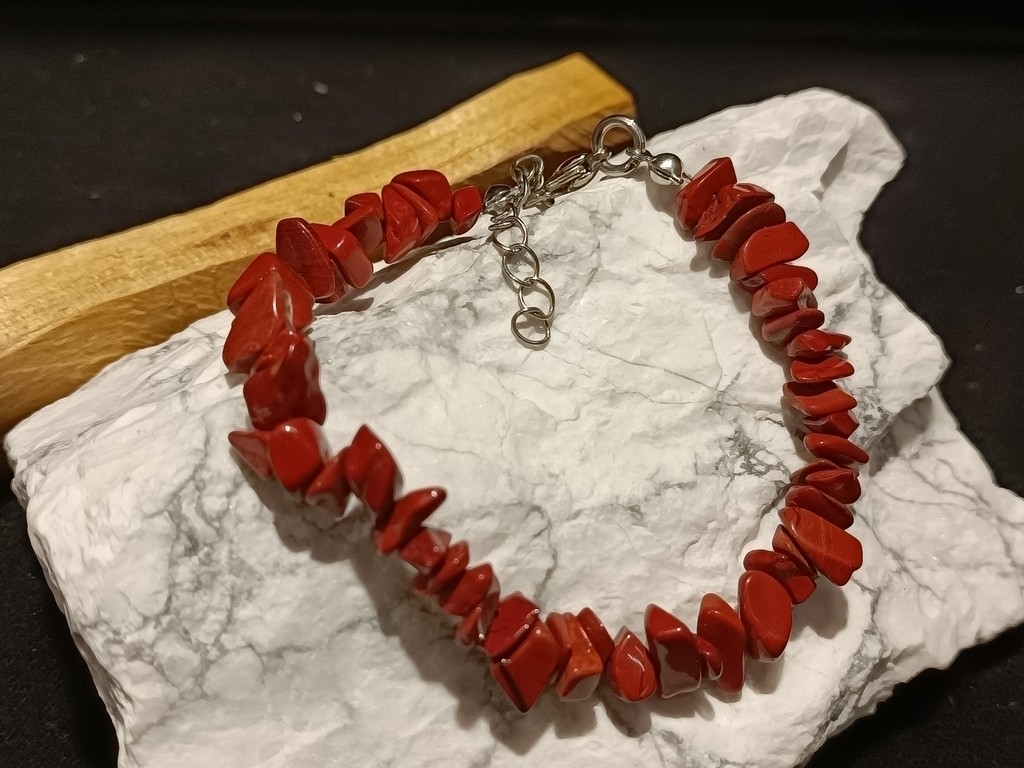 Narukvica koju smo za Vas izradili sačinjena je od poludragog kamena crvenog Jaspisa.