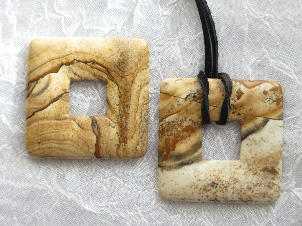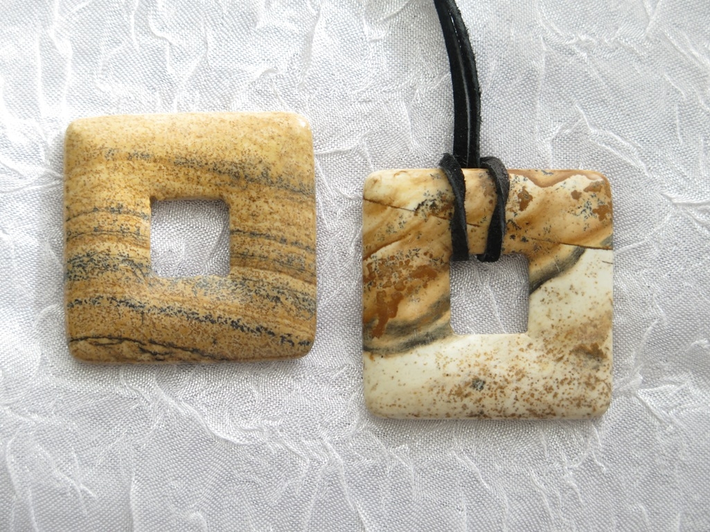 Privjesak na slikama je izrađen od prirodnog kristala zemljanog Jaspisa. Glatko je obrađen u obliku kvadrata, veličine 35 x 35 mm. Krasi ga žuto – smeđa boja s raznim šarama. Kroz rupu u sredini može se objesiti na kožnu traku, špagu ili uz dodatni metalni element na bilo koji lančić. njih po želji možete kupiti na stranicama naše online prodaje. Svaki kristal drugačijeg je izgleda a da bi Vas zadovoljili potrudit ćemo se poslati vam najljepše primjerke po našem izboru. Istražite Lotos katalog nakita s poludragim kamenjem za izvrsne cijene.