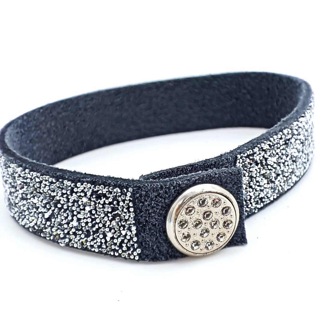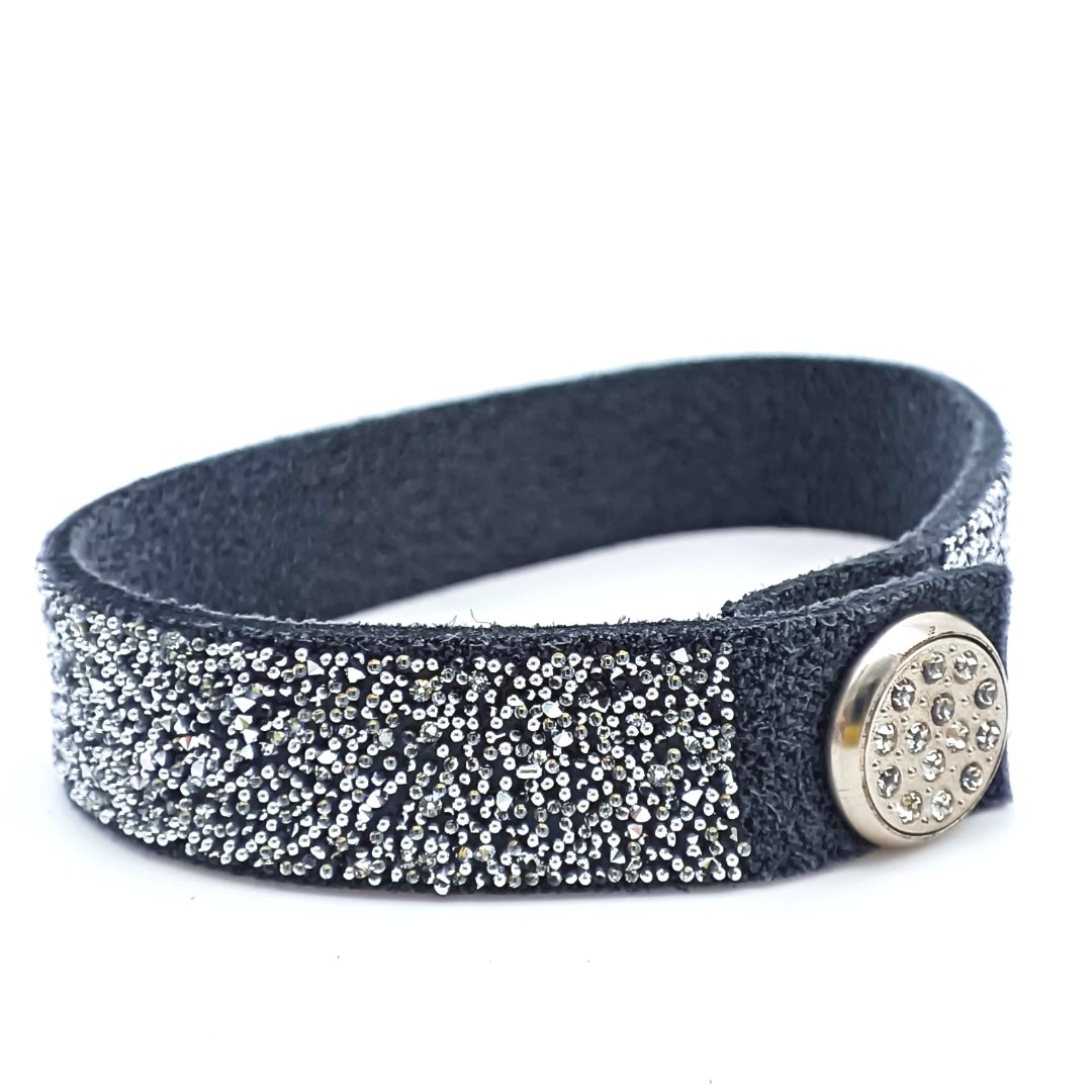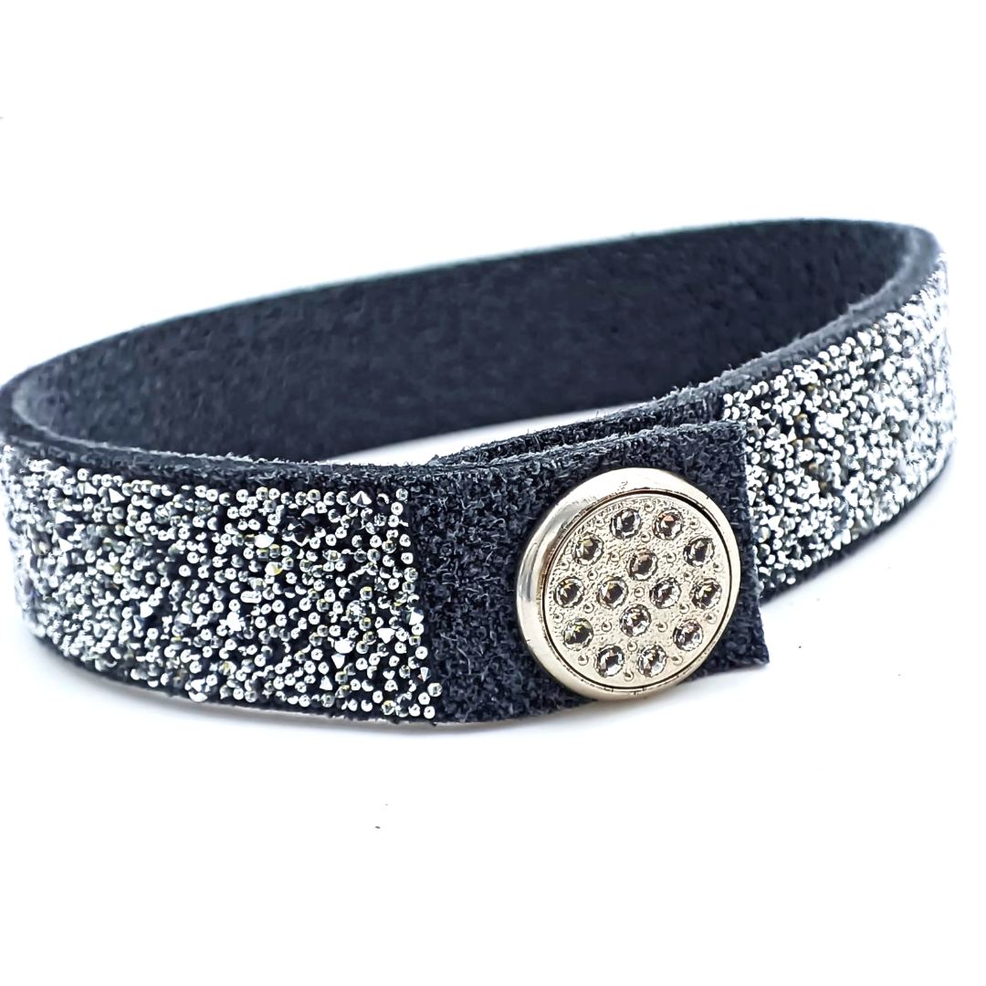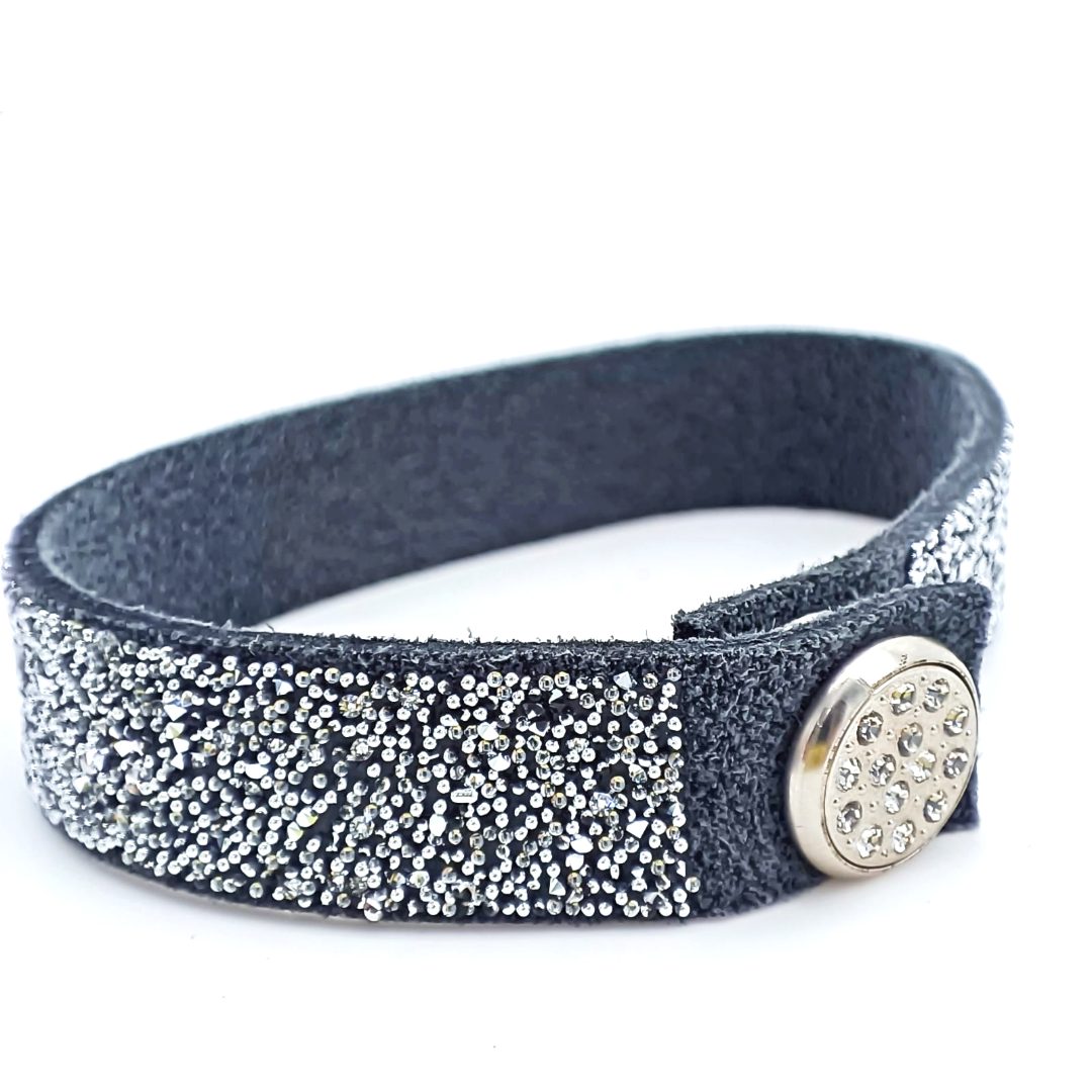 Kožne narukvice od sitnih Swarovski kristala prozirno-srebrnog sjaja. Metalni dijelovi proizvedeni su od antialergijskog metala, bez nikla, prevučenog s Rodijem radi zaštite i sjaja. Koža je crne boje. Kopča se na rabatin kopču.Nakit od Swarovski elemenata proizvela je češka firma L&S Bohemia koja je autorizirani proizvođač proizvoda od Swarovski kristala. Ove lagane narukvice zapakirane su u vrlo lijepoj crno-bijeloj kutiji sa certifikatom. Lotosov online katalog nakita dobre kvalitete i povoljnih cijena.
