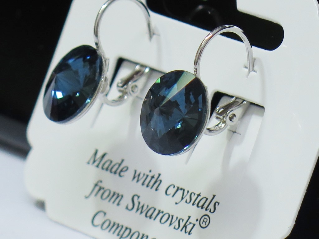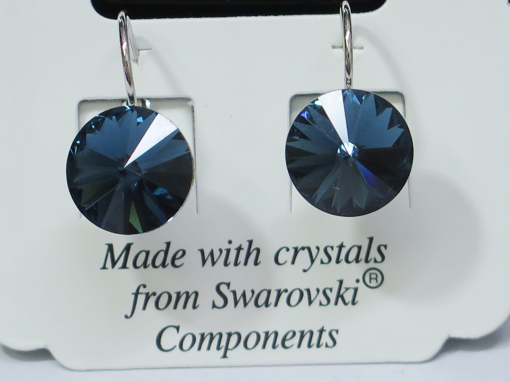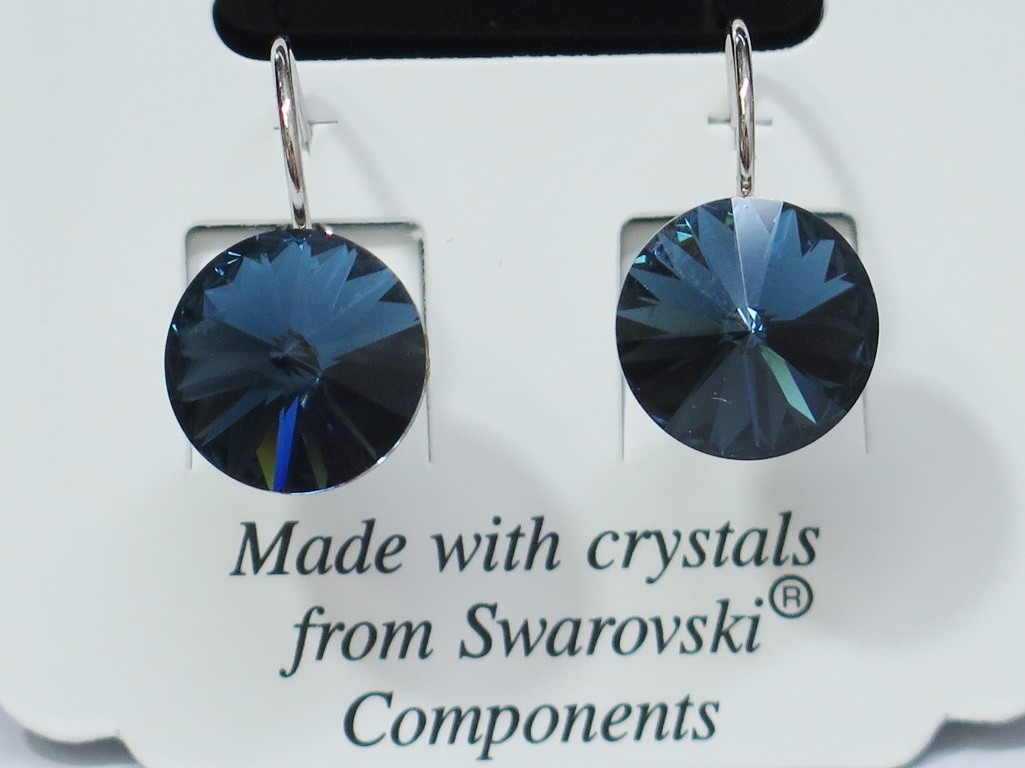 Swarovski Elements naušnice s prekrasnim prozirno-tamnoplavim i prelijevajuće-sjajnim bojama. Stakleni kristali širine su 12 mm. Naušnice se navlače na klap (udica zatvorenog tipa s osiguračem). Proizvedene su od antialergijskog materijala, bez nikla, koji je zaštićen s plemenitim Rodijem. Prekrasan ženski nakit rad je autorizirane češke firme L&S Bohemia s.r.o. Na online katalogu prodajemo velikim izbor naušnica…