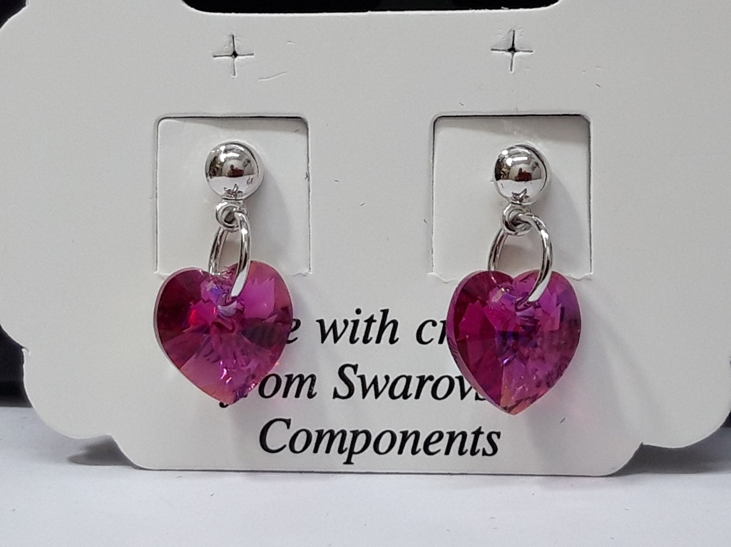 Naušnice od Swarovski kristala u obliku srca. Kristali su promjera 10 mm, lijepih boja ciklame te prozirno-prelijevajuće-sjajnih tonova. Naušnice su vrlo lagane i navlače se na iglu s osiguračem. Materijali su antialergijski, bez nikla, zdravstveno ispravni, prevučeni i zaštićeni s Rodijem. Nakit je proizvod češke firme L&S Bohemia s.r.o. koja je autorizirani proizvođač ženskog nakita od Swarovski elemenata. Online katalog naušnica nudi široki izbor modela i povoljnih cijena.