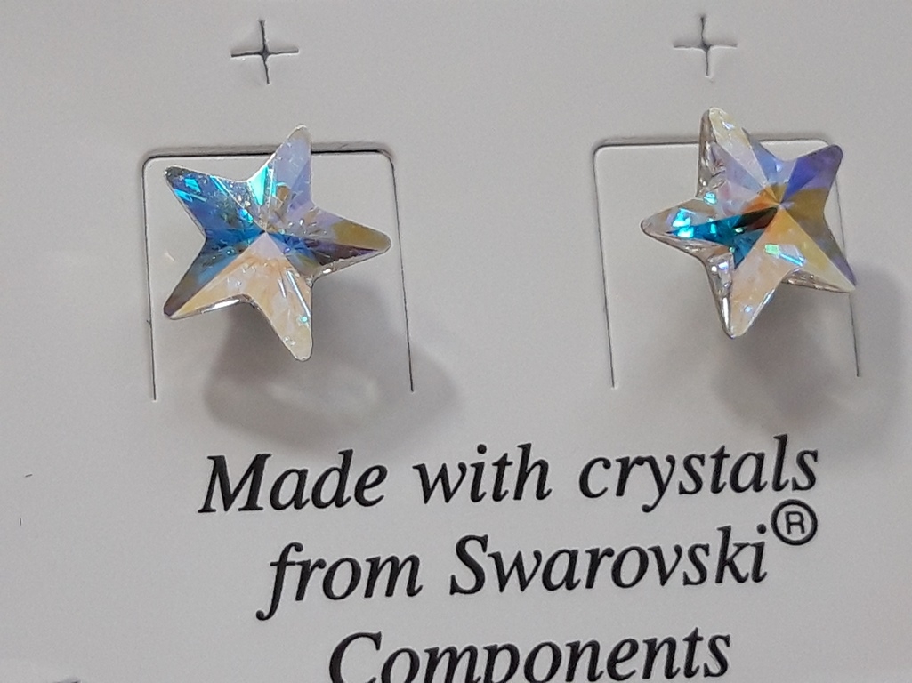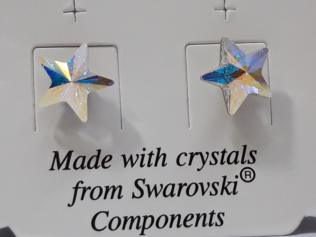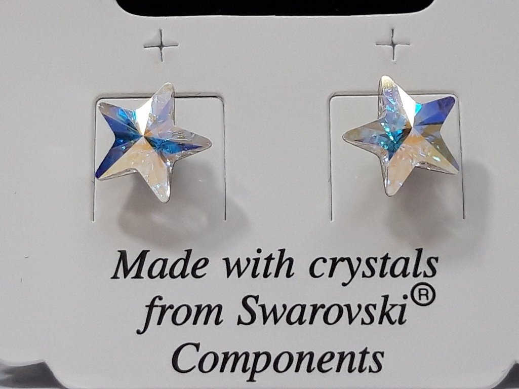Swarovski Elements naušnice s kristalima u obliku zvjezdice oduševit će Vas svojim minimalizmom i efektnim dizajnom. Imaju prelijevajuće, metalik-sjajne dugine boje. Naušnice se navlače na iglu s osiguračem. U potpunosti su načinjene od visokokvalitetnog antialergijskog materijala bez nikla koji je zaštićen plemenitim Rodijem. Ovaj lijepi ženski nakit od originalnih Swarovski kristala proizvod je češke tvrtke L&S Bohemia s.r.o., koja je autorizirani proizvođač i distributer ornamenata ovog svjetski poznatog brenda. Provjerite Lotosov katalog raznovrsnih modela po umjerenim cijenama.