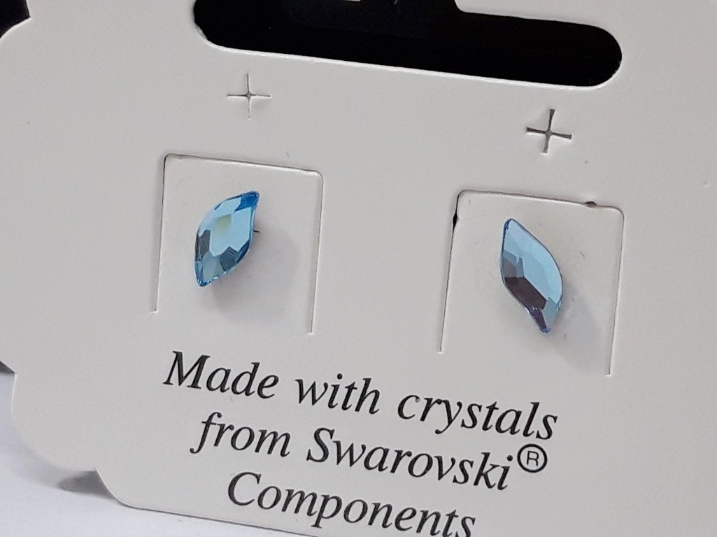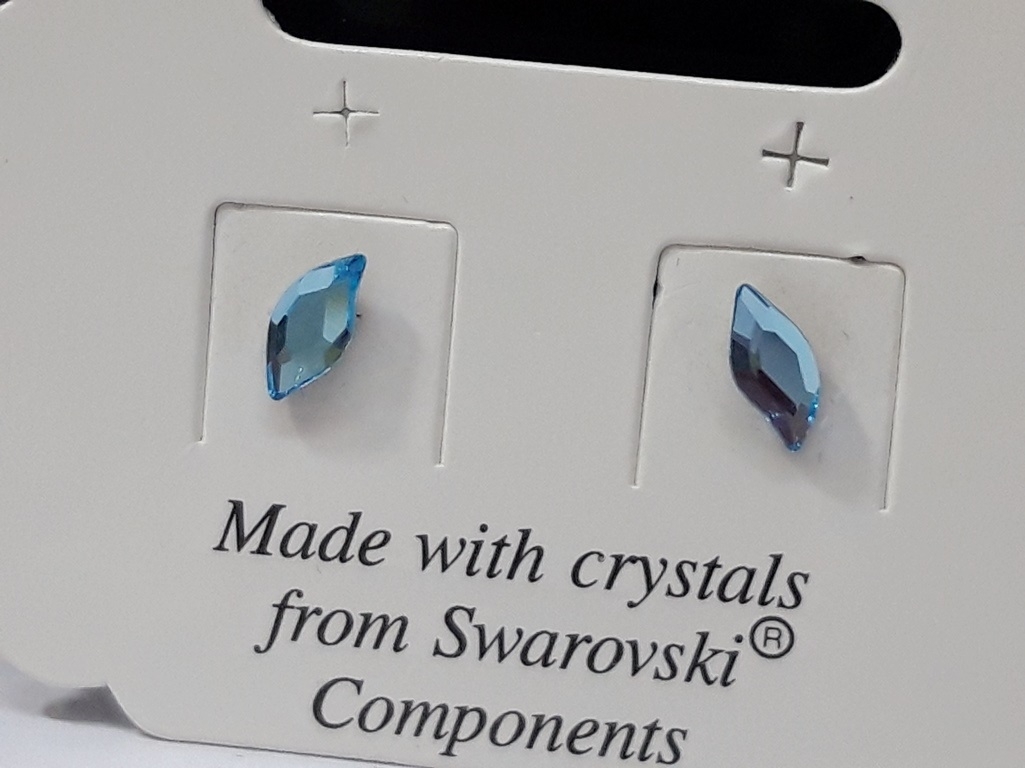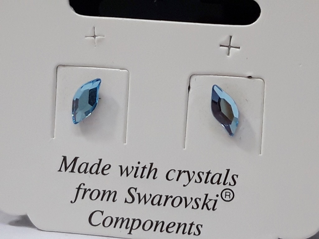 Sitne naušnice od Swarovski kristala 8 x 3 mm, svijetloplavih boja te prelijevajuće-sjajnih tonova. Navlačenje je na iglu s osiguračem. Proizvedene su od antialergijskog metala, bez nikla, prevučenog s Rodijem radi zaštite i sjaja. Proizvod su češke firme L&S Bohemia, ovlaštenog proizvođača ženskog nakita od Swarovski komponenata. Preko online kataloga naušnica nudimo raznovrsan nakit za povoljne cijene.