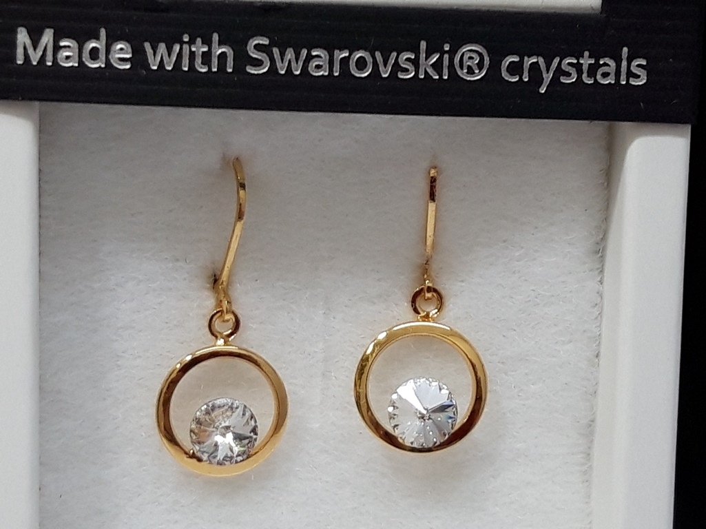 Naušnice napravljene su od metalnog kruga zlatne boje s prozirnim Swarovski kristalom promjera 6 mm u sredini. Antialergijski metali, bez nikla, zaštićeni s plemenitim Rodijem. Navlače se na klap (udica zatvorenog tipa s osiguračem). Ovaj ženski nakit dizajnirala je češka firma L&S Bohemia, ovlašteni proizvođač. Pogledajte naš online katalog kvalitetnog nakita po pristupačnim cijenama.