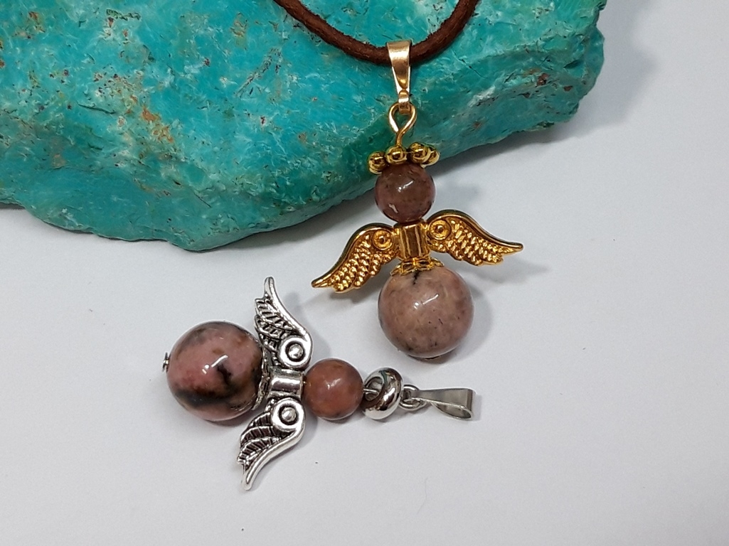Home / Nakit iz naše radione / Poludrago kamenje nakit / Rodonit nakit / Rodonit privjesak anđeo A-001