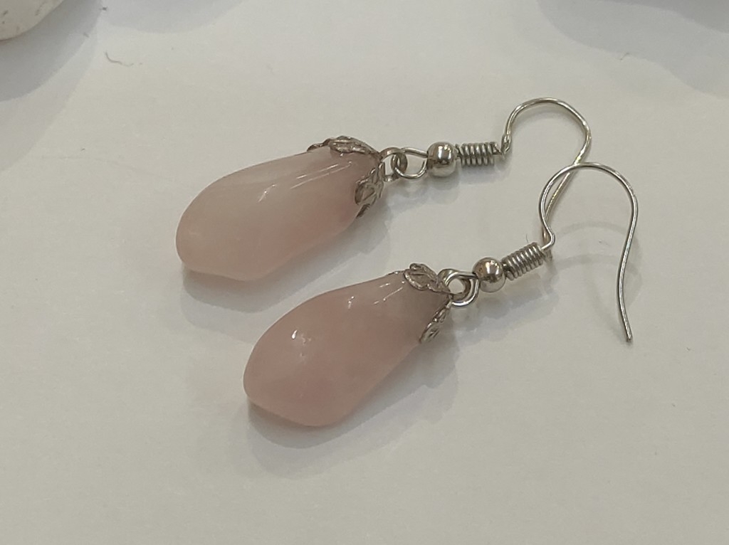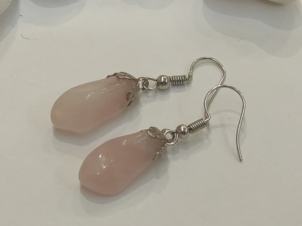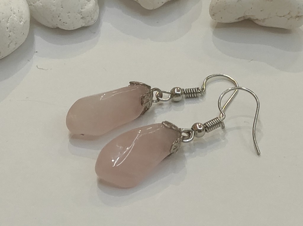 Rozenkvarc naušnice prikazane na fotografijama u prvi plan stavljaju prirodnu ljepotu samog kamena. Jednostavnog su dizajna i unijet će notu svježine u Vašu već postojeću kolekciju uresa. Sačinjavaju ih poludragi kameni glatkih, poliranih površina i lijepe svijetlo-ružičaste boje. Kristali Ružičnjaka različitih su veličina i oblika. Možete birati između više vrsta navlačenja, na: otvorenu udicu, iglu, klap (zatvorenu udicu) ili klipsu (za neprobušene uši). Ipak, ne zaboravite kako će izbor vješanja odrediti visinu ovog ornamenta. Ako to želite i napomenete nam u bilješkama narudžbe, stavit ćemo srebrne rodinirane udice za nadoplatu od 3,98 eura po paru. Antialergijske otvorene udice presvučene Rodijem postavit ćemo za 1,99 eura naknade/par. Kako je svaki mineral drugačijeg izgleda i nijansi boja, primjerak koji dobijete može se razlikovati od uzoraka s fotografija. Ali budite uvjereni kako ćemo Vam uvijek isporučiti najljepše komade po našem izboru. Lotosova online prodaja nudi Vam mogućnost isplative kupovine nakita od poludragih kamena po više nego dobrim cijenama, uz brzu dostavu na naznačenu adresu.