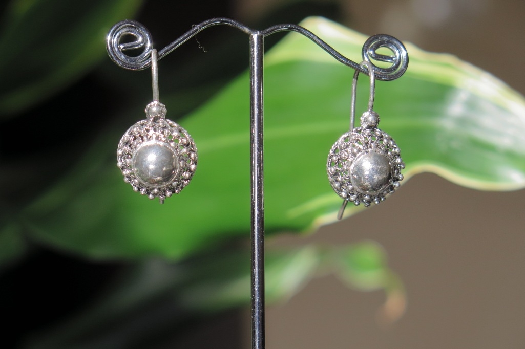 Tradicijske naušnice od srebra 925 finoće djelo su priznatih majstora zlatara iz Omiša. Oni su ukomponirali glatki, ispupčeni dio u središtu sa širokim filigranskim rubom. Prekrasan je komad koji će se odlično slagati sa bilo kojim drugim nakitom tradicionalnog stila. Ovo je stil poznat kao šibenski i dubrovački nakit, koji je cijenjen kod nas ali i u svijetu. Navlače se na udicu koja se jednostavno zakači na malu kukicu.