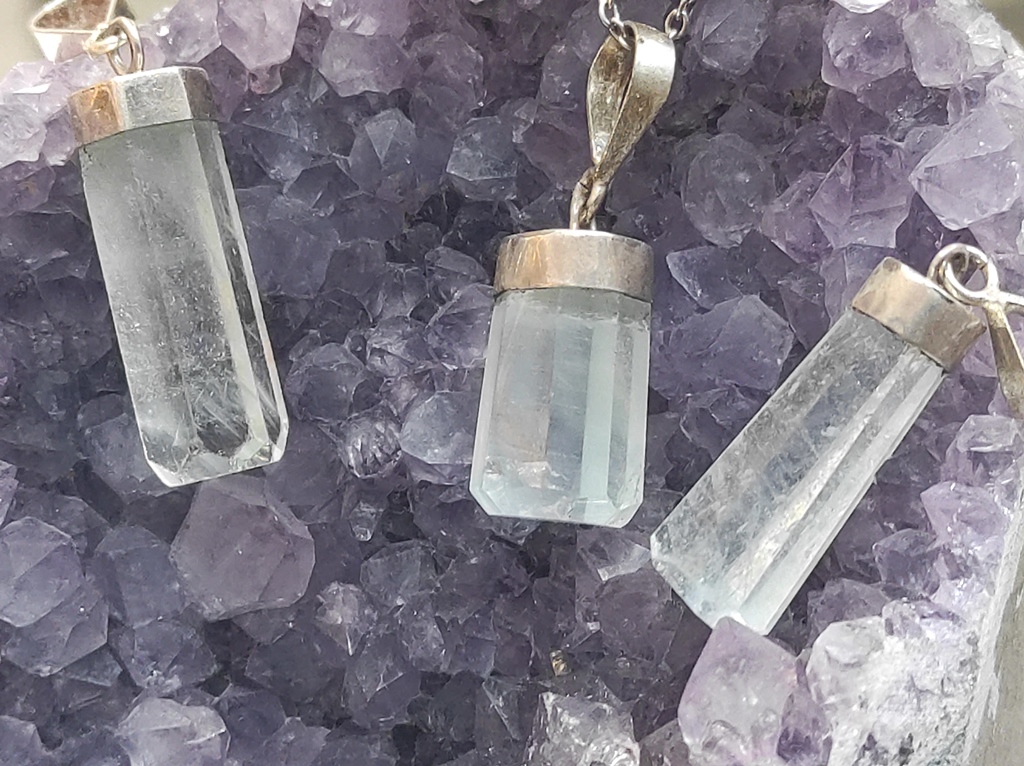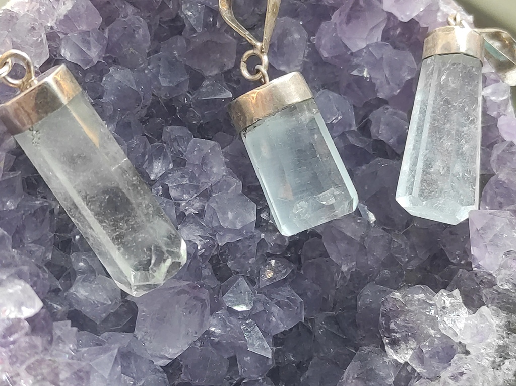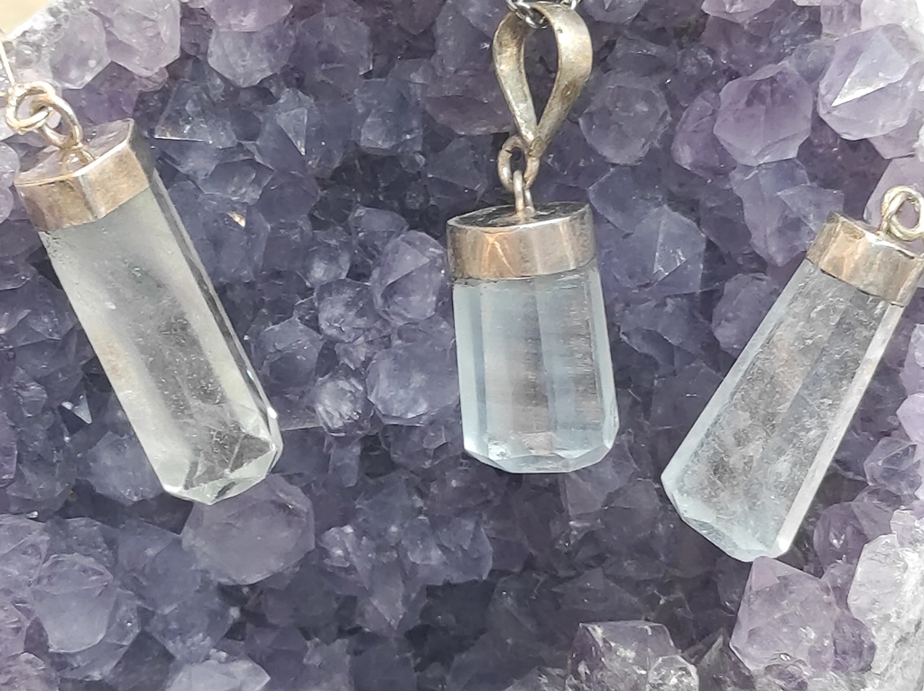 Srebrni privjesak napravljen od poludragog kamena Akvamarina i srebra 925 finoće. Kristal je lijepih svijetloplavih boja te solidne prozirnosti.