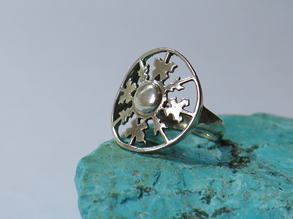 Srebrni prsten izrađen u obliku kruga isprepletenog s listovima. Materijal je 925 finoće s našim državnim žigom, te je zaštićen s Rodijem bez nikla (antialergijski). Njegov unutarnji dijametralni promjer u mm naći ćete na Veličina ISO. Lijepo će istaknuti Vaše prste na neobičan način. Neće biti prenametljiv prilikom odabira Vaših modnih kreacija niti će vam smetati u obavljanju svakodnevnih poslova. Lotosova online prodaja nudi kvalitetan srebrni nakit, putem web shopa za niske cijene uz brzu i pouzdanu isporuku. Na vaša kućna vrata dobit ćete upravo ovaj primjerak ženskog prstenja kojeg vidite na fotografijama.