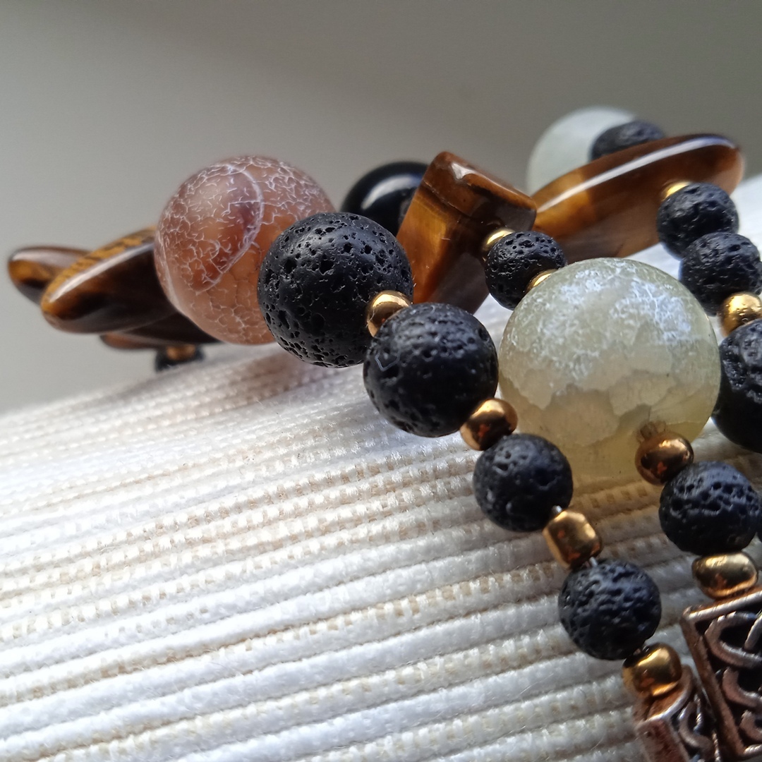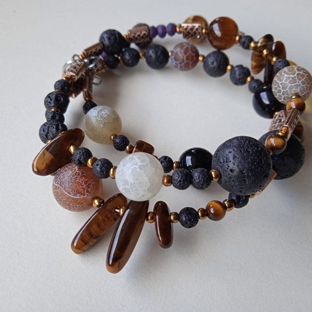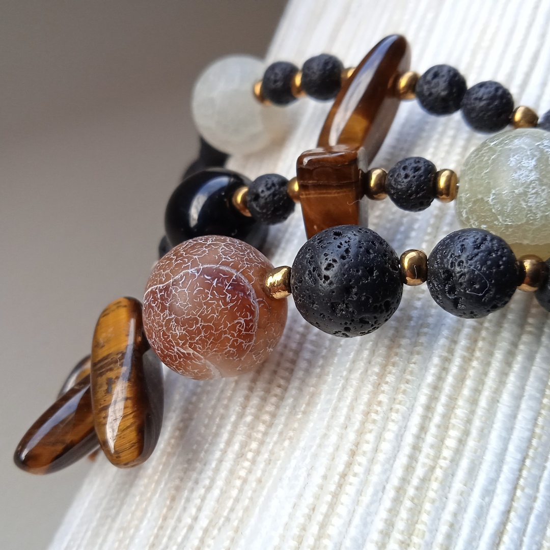 Unikatna i maštovito ručno dizajnirana narukvica od poludragih kamena Ahata, Tigorovog oka te Vulkanske lave, koja će u bilo kojem trenutku istaknut vaše biće.