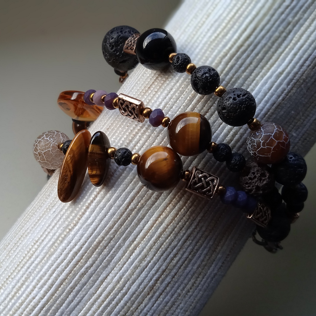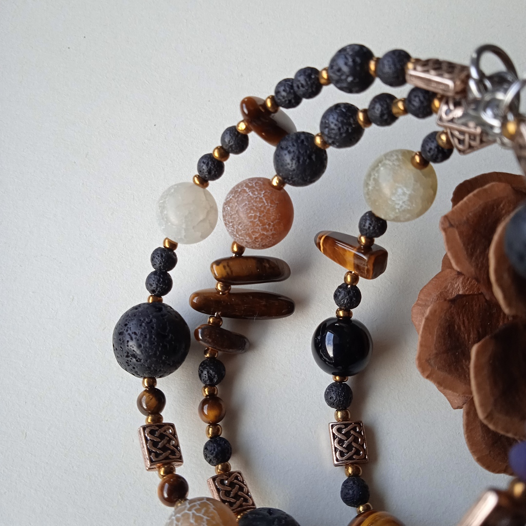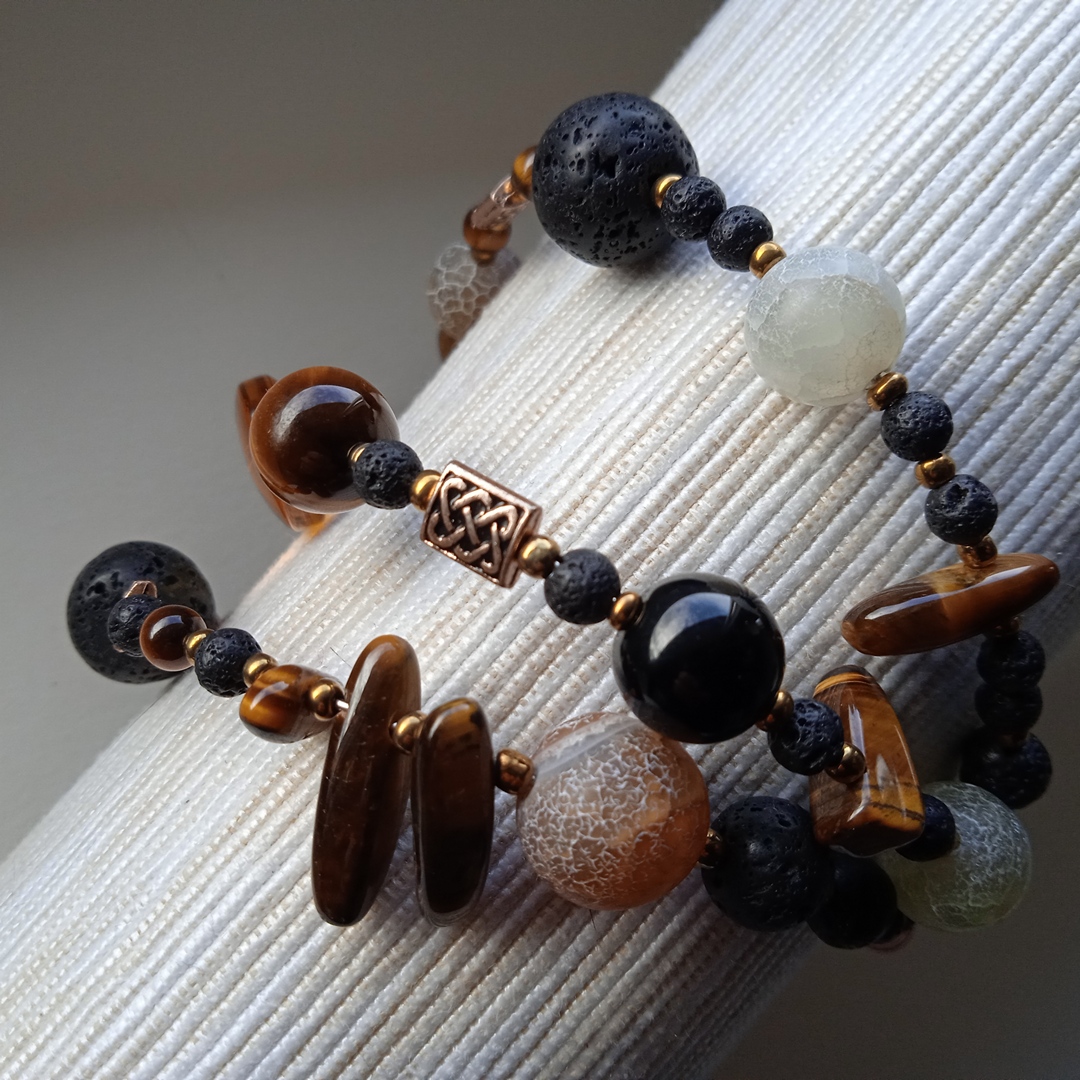 Unikatna i maštovito ručno dizajnirana narukvica od poludragih kamena Ahata, Tigorovog oka te Vulkanske lave, koja će u bilo kojem trenutku istaknut vaše biće.